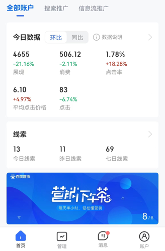 11 2023-04百度競價推廣如何降低成本?pc端和移動端必須要分開嗎?1、便于數據分析Pc和移動的數據可以一目了然,可以非常直觀的看到pc和移動的消費占比;2、便于調整出價如果不分開,移動設備只能通過系數調整出價,沒辦法具體到每一個關鍵詞,如果調整了關鍵詞出價,pc設備的也會被調整,牽一發而動全身,并不方便;3、方便操作且節省費用,客戶移動端搜索為主,